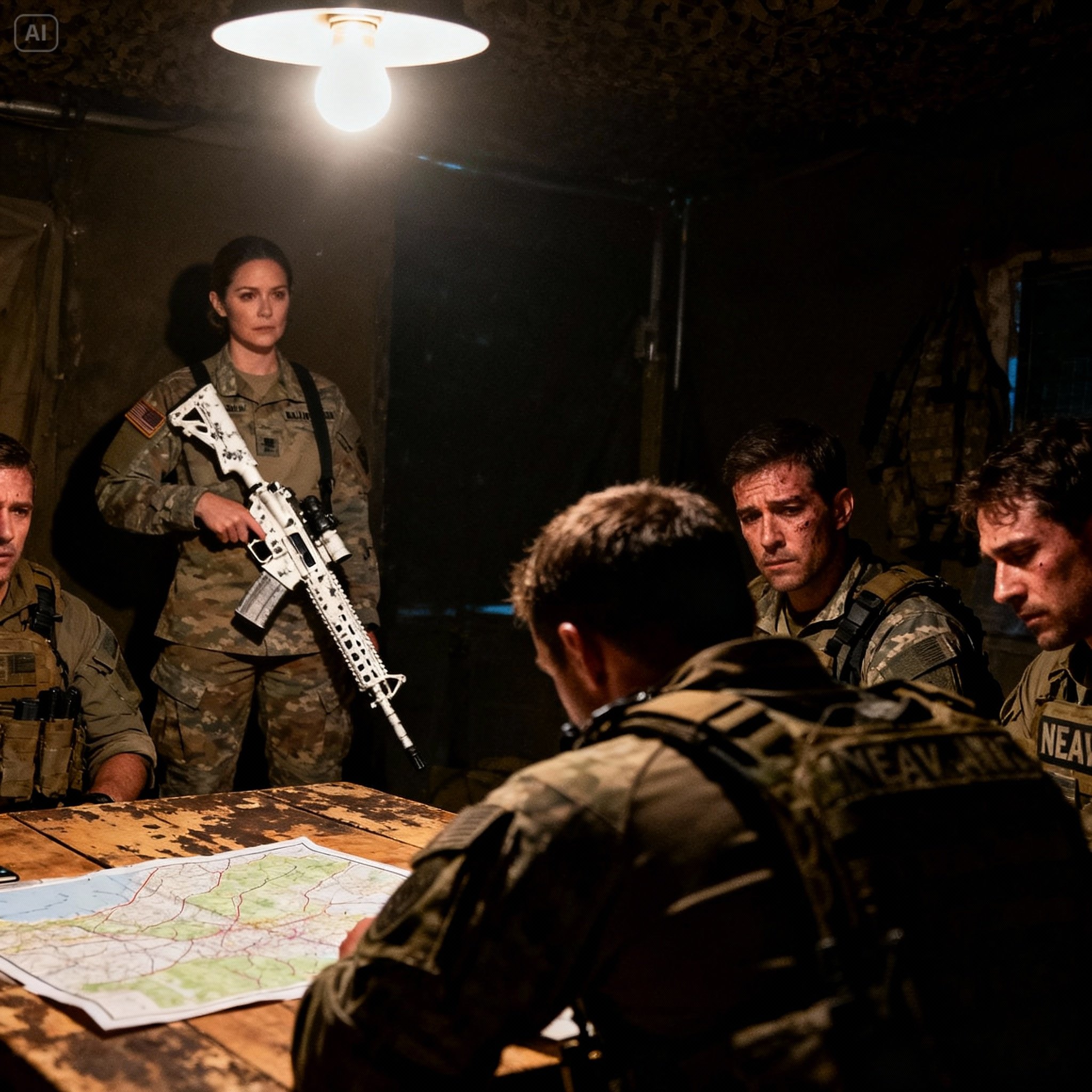 Doctrine said to stay hidden, maintain overwatch, and not break position. But as she watched another burst of fire chew apart the SEALs’ cover, she knew doctrine would get them all killed. The decision came without hesitation. She slung her long rifle across her back, grabbed her carbine, and whispered into her comms, “Stay down. I’m moving.”
