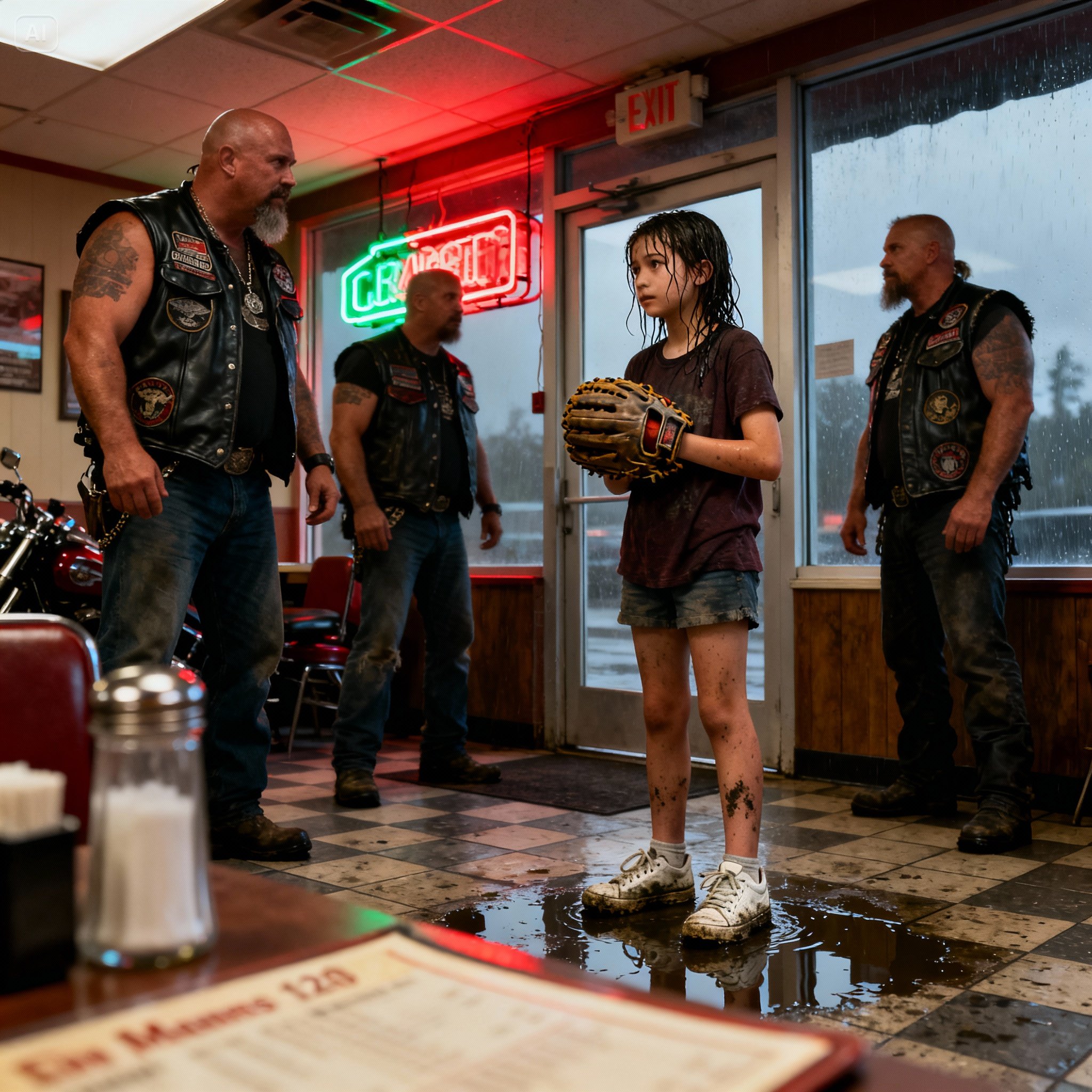 A girl stood there, maybe twelve years old, a single dark braid plastered to the side of her face, dripping a steady rhythm onto the worn linoleum. She was hugging a baseball glove to her ribs like it was the only thing holding her together. Her sneakers, once white, were now the color of a dirty tide, and they squeaked as she took a hesitant step inside, bringing the smell of rain and damp earth with her.