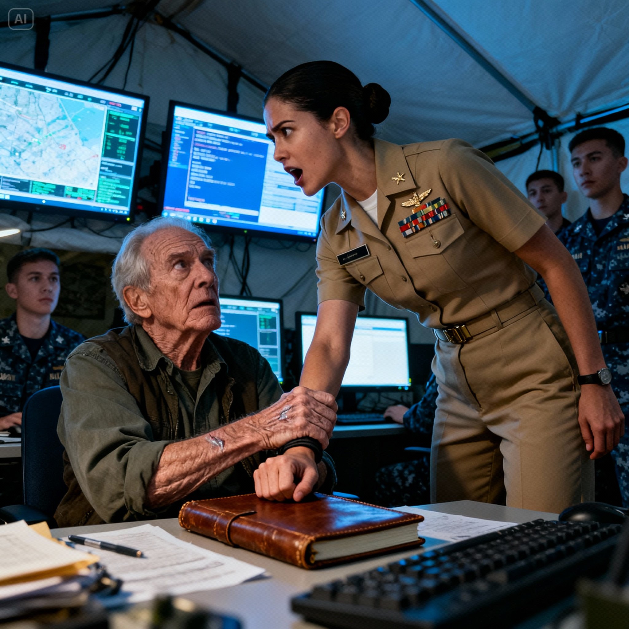 Back in the electric chill of the operations tent, Lieutenant Khloe Vance was feeling smug. She had faced down insubordination and reasserted her authority. She was now making a deliberate show of reviewing data feeds on a large, wall-mounted screen, demonstrating her focus and unwavering control to the rest of the watch floor. She was a leader, and leaders dealt with problems swiftly and decisively. She fully expected two burly Master-at-Arms to arrive any second to haul the old man away. It would be a perfect, visible lesson for anyone else who thought protocol was optional.
